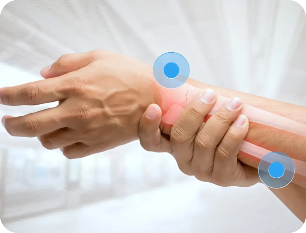 They offload irritated tendons and nerves so healing progresses while you rebuild capacity. We fine-tune desk and tool setup—wrist angles, heights, break frequency—and plan to wean supports as symptoms and strength improve. Practical steps live in Splinting & Ergonomics; related patterns like De Quervain’s often benefit from short-term immobilization.